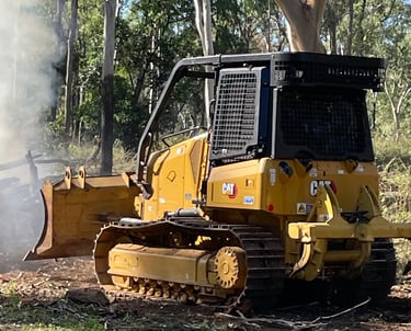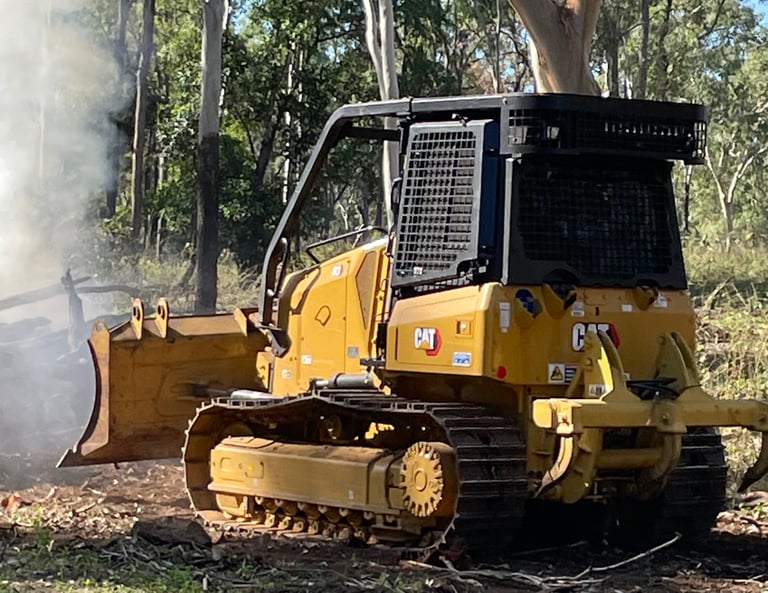 D3 Dozer fitted with stick rake for selective land clearing and firebreak construction