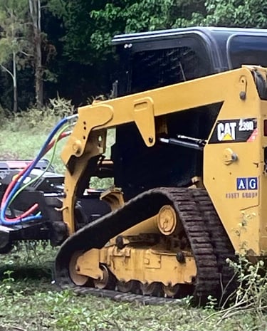 Posi-Track loader with forestry mulcher and slasher for invasive vegetation removal