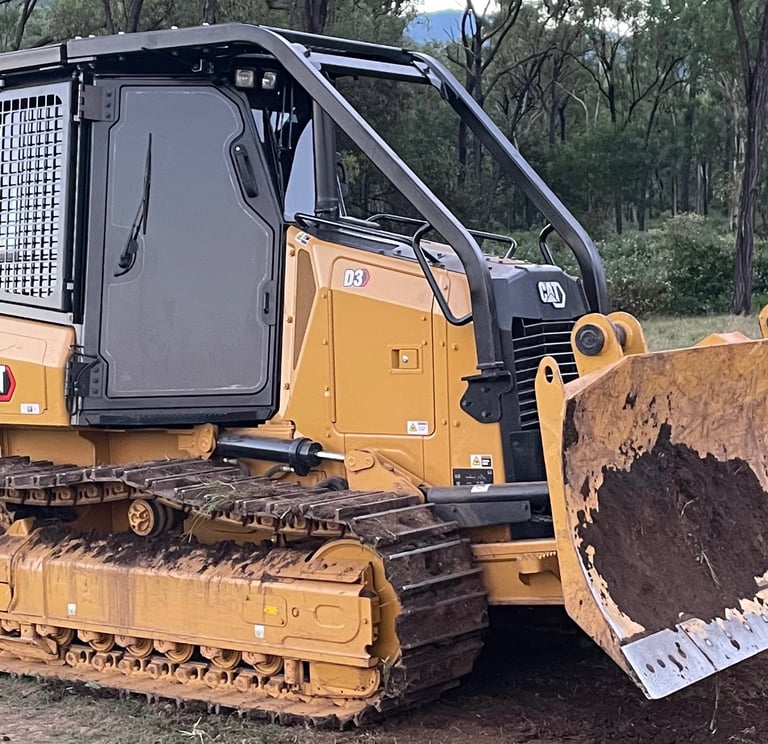 D3 Dozer fitted with stick rake - selective land clearing, firebreaks, property access